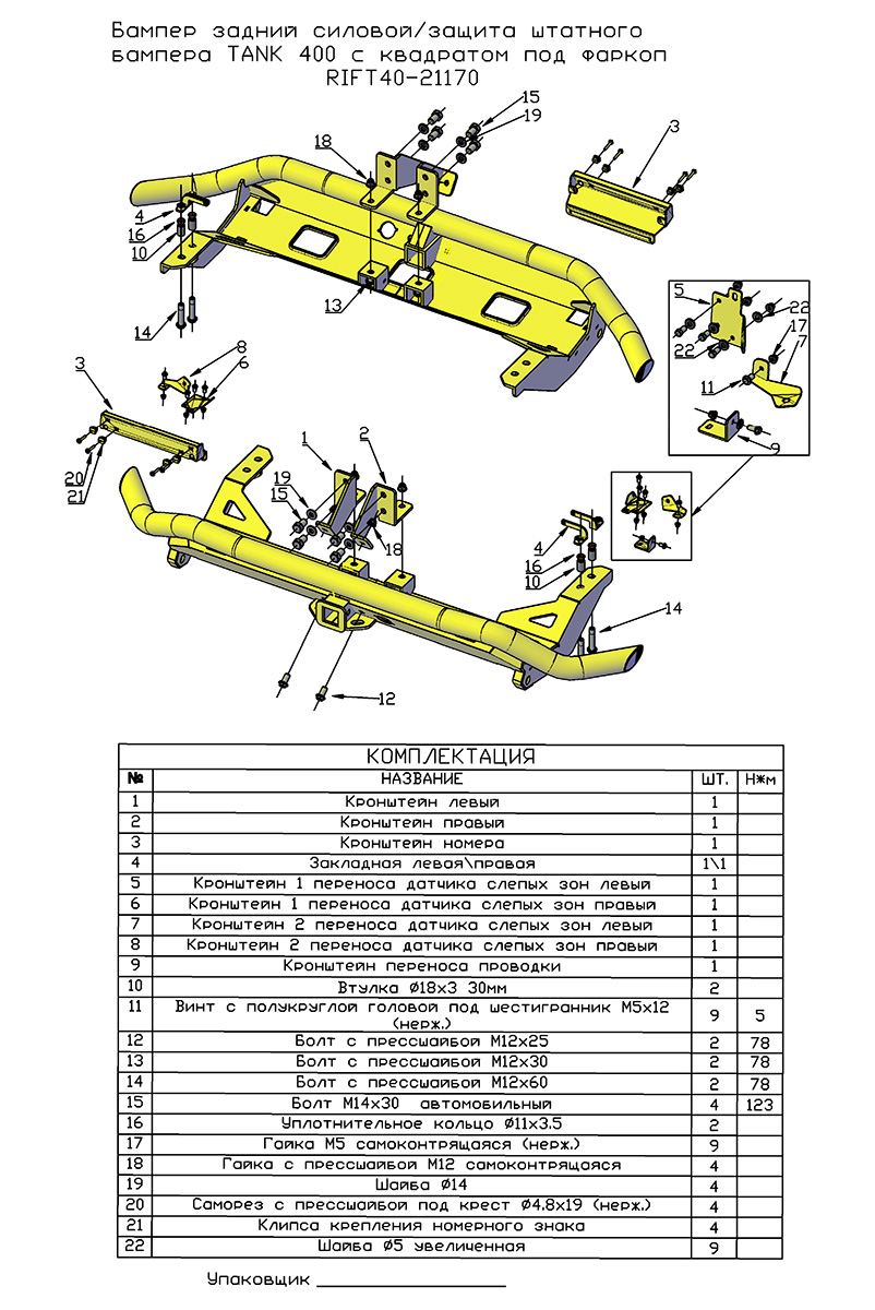 Задний силовой бампер (защита штатного бампера) РИФ для TANK 400 — Арт. RIFT40-21170