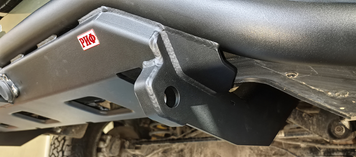 В основе конструкции лежит труба с толщиной стенки 3 мм . Это не та тонкостенная китайская гофра, которая сложится от первого касания с пнем. Это упругий и прочный каркас, который принимает удар на себя, гася энергию и защищая штатный пластик и, что важнее, геометрию кузова/рамы. Кронштейны крепления выполнены из стали 6 мм — это зона, отвечающая за то, чтобы бампер остался на месте даже при самых жестких рывках.