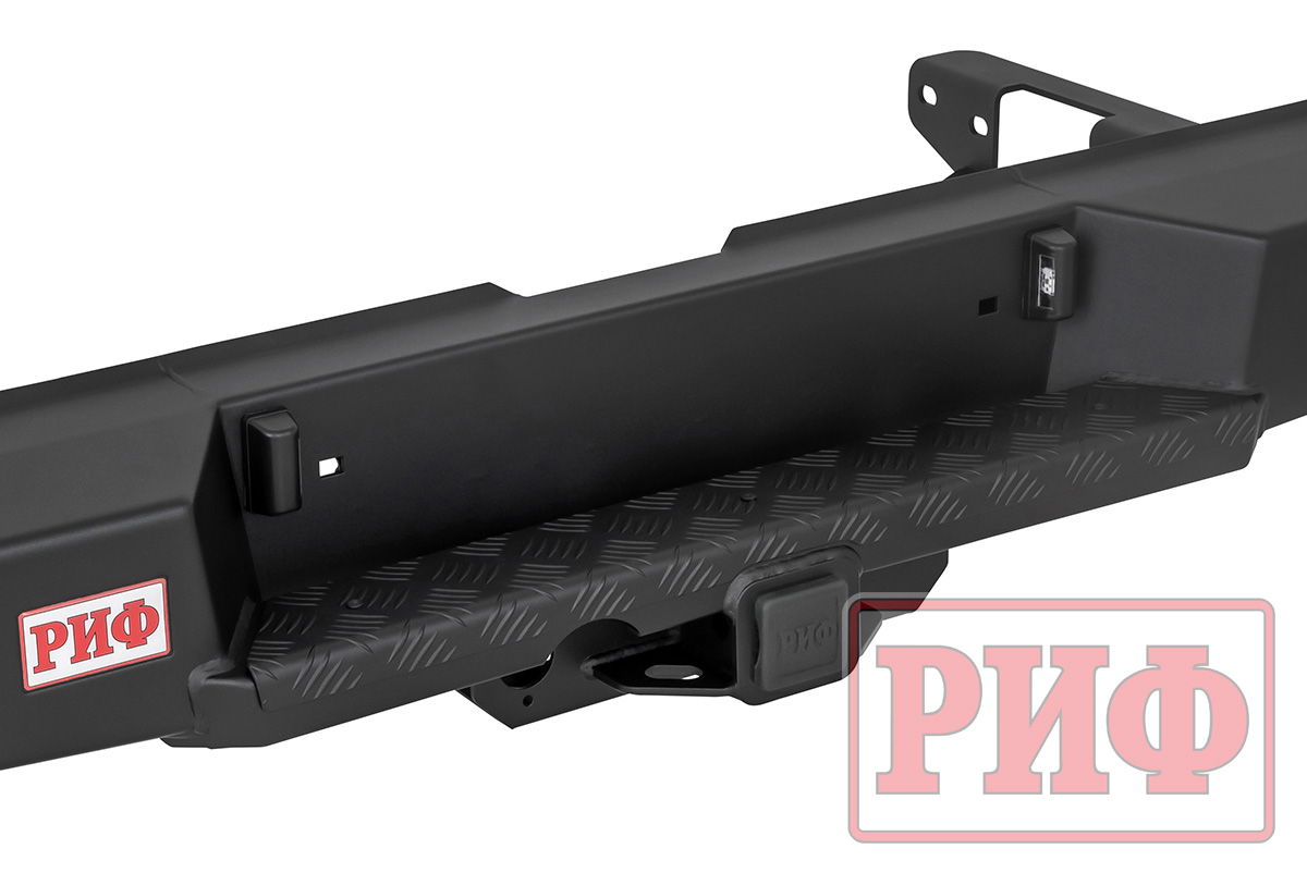 Бампер РИФ окрашен черной порошковой краской. Это не просто для красоты — это многослойное полимерное покрытие, которое: