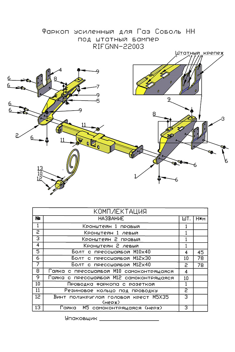 Технические характеристики фаркопа РИФ для ГАЗ Соболь NN: