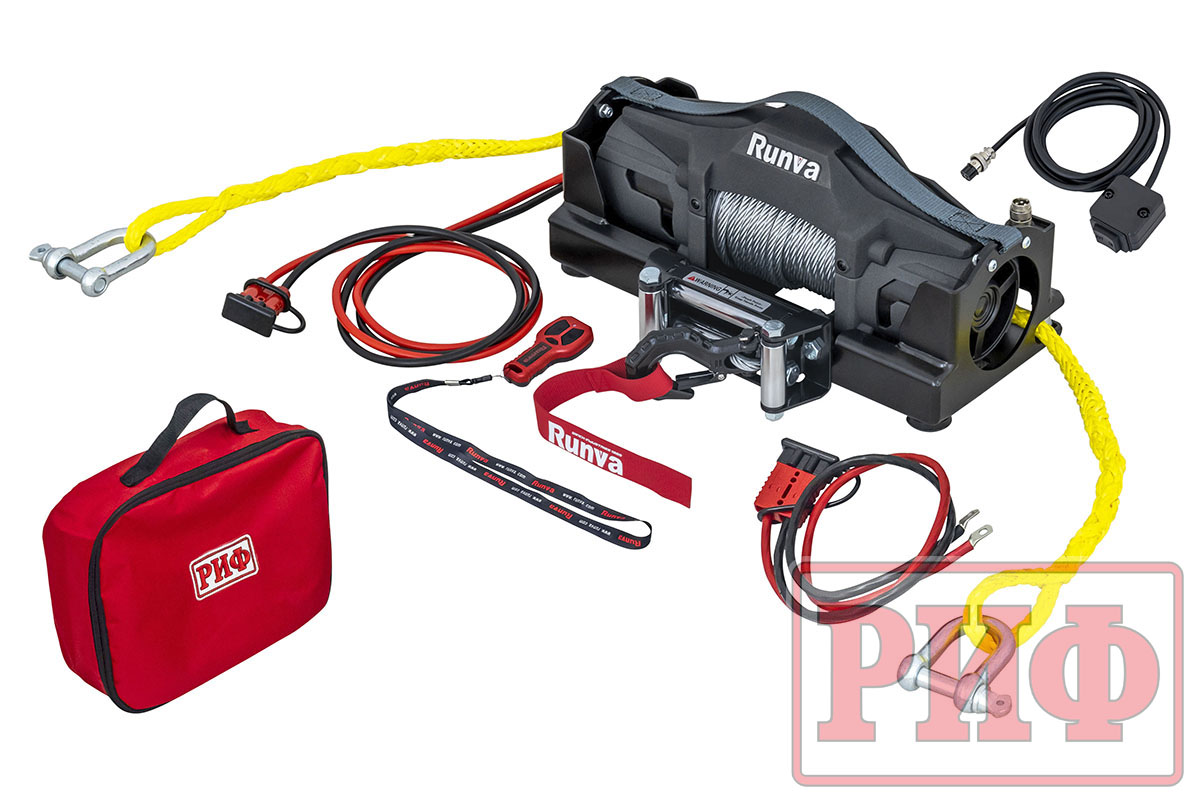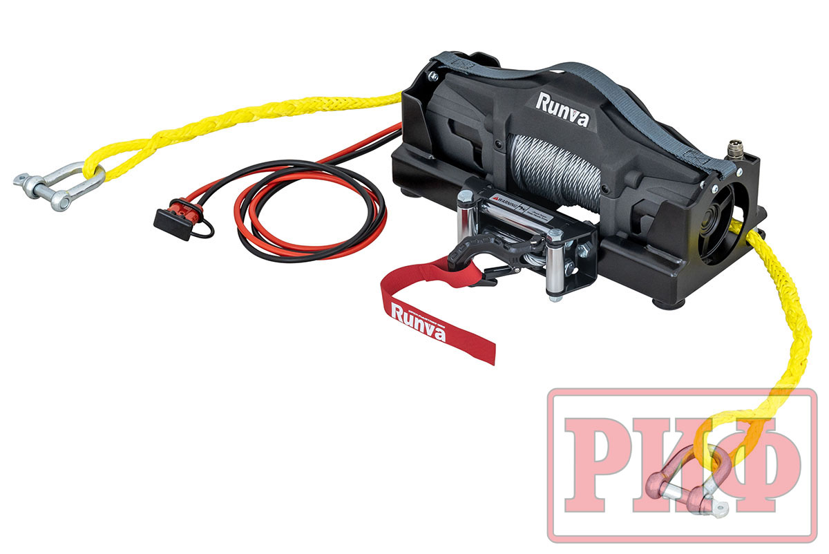 В основе этого переносного комплекта лежит электрическая лебёдка Runva EWV6000F. Это не ноунейм с Алиэкспресса, а агрегат с реальным тяговым усилием 6000 lbs (2722 кг) .