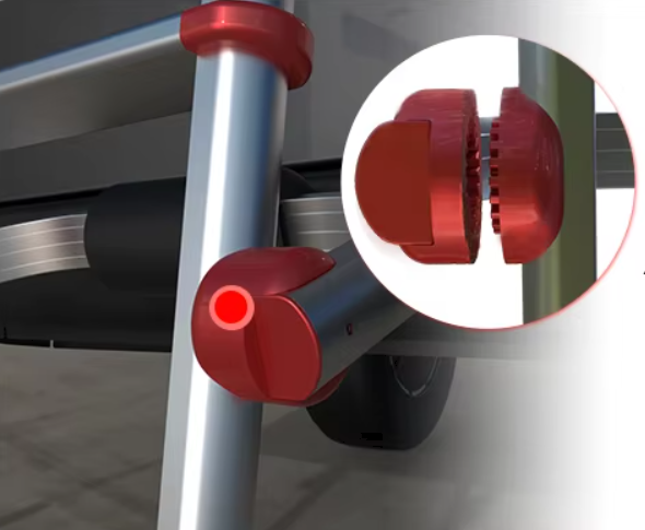 Эта модель оснащена специальной защитой, которая предотвращает контакт металла с кузовом при раскладывании и установке. Вы можете спокойно приставлять лестницу к борту, не опасаясь за сохранность внешнего вида вашего автодома.