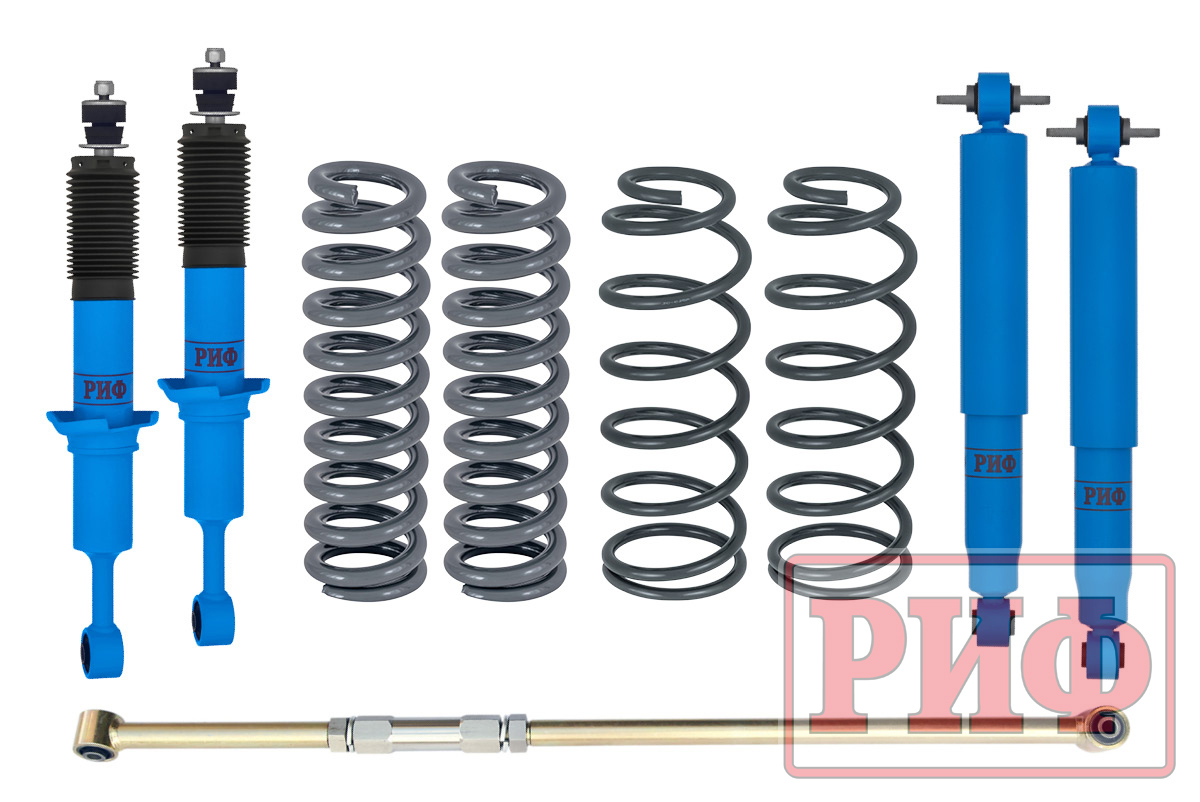 | Пружины РИФ задние | 30-035A | 1 компл. (2 шт.) | Лифт 30 мм, расчетная дополнительная нагрузка 0-100 кг. Компенсируют вес груза в багажнике и оборудования, предотвращая просадку. |