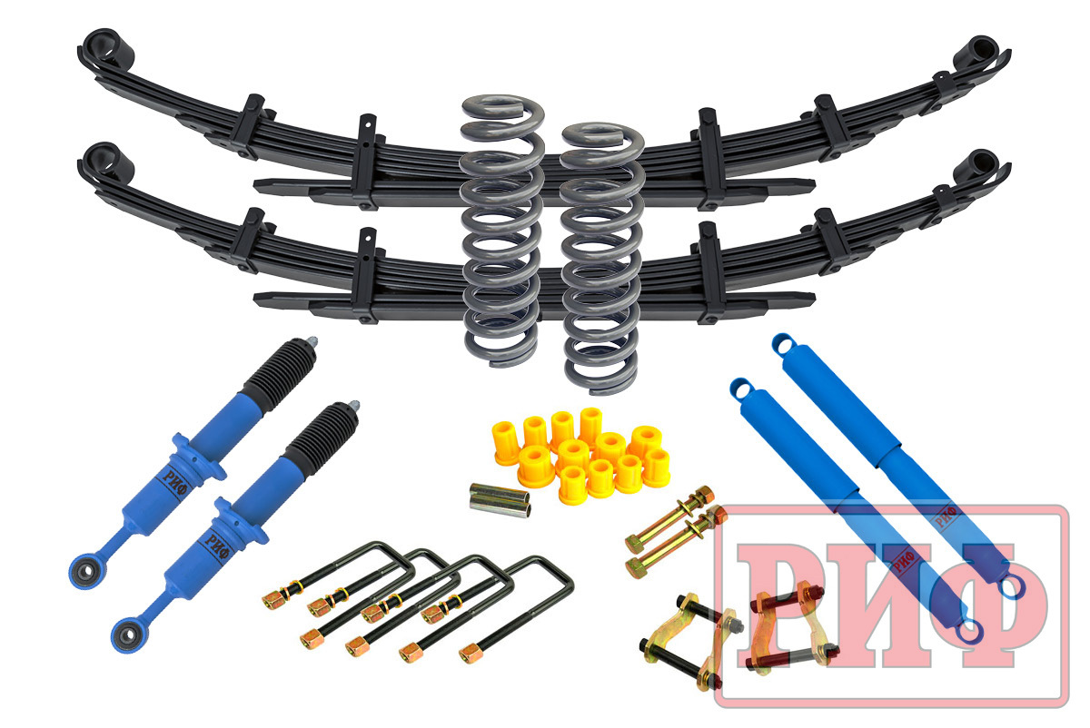 | Пружины РИФ передние (1 комплект) | Усиленные пружины с дополнительной нагрузкой до 50 кг. Компенсируют вес доп. оборудования (лебедка, бампер). |