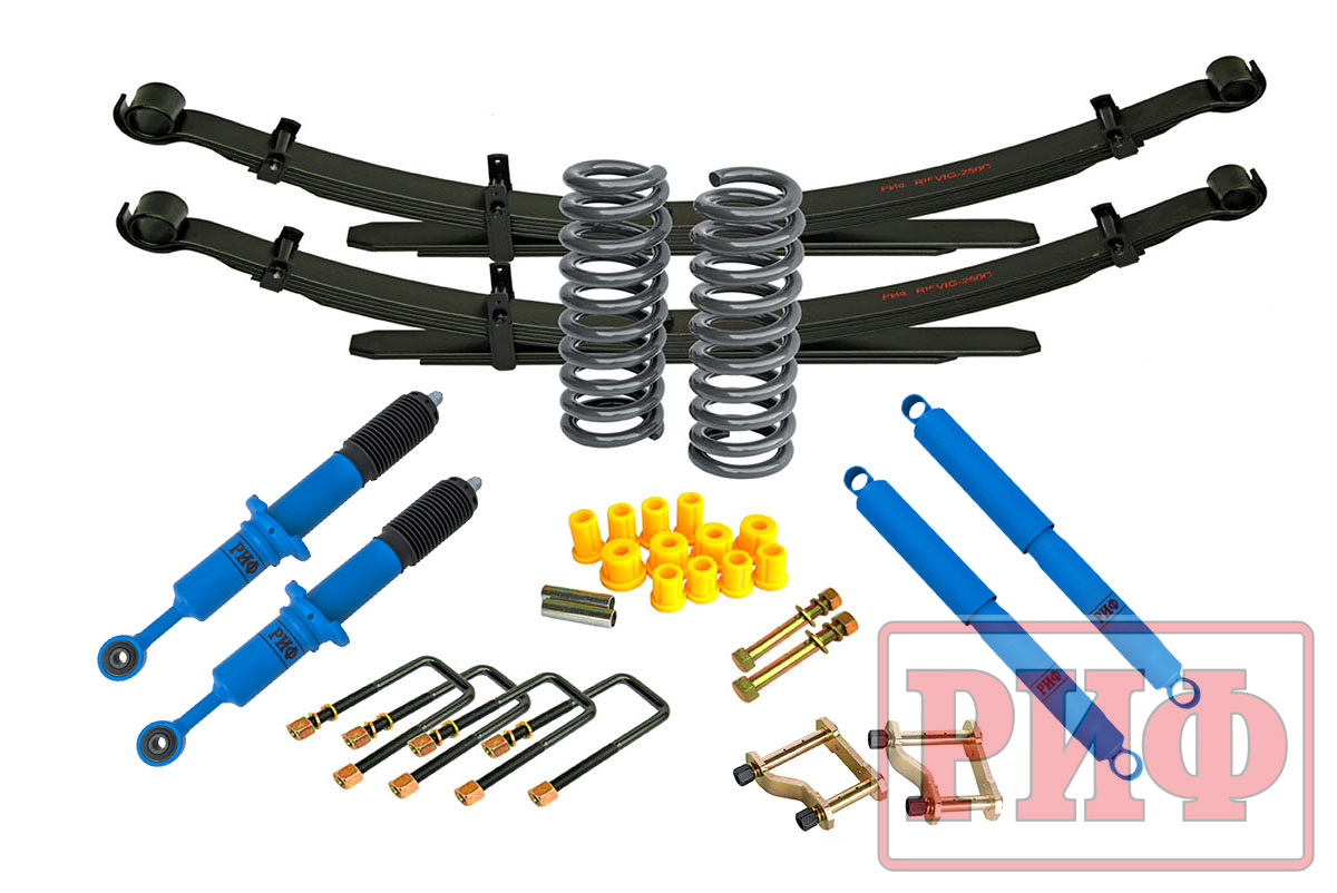 Если же вы планируете серьезную экспедиционную подготовку с большими весами, обратите внимание на «жесткий» (или «усиленный») вариант лифт-комплекта РИФ с пружинами и рессорами большей грузоподъемности.