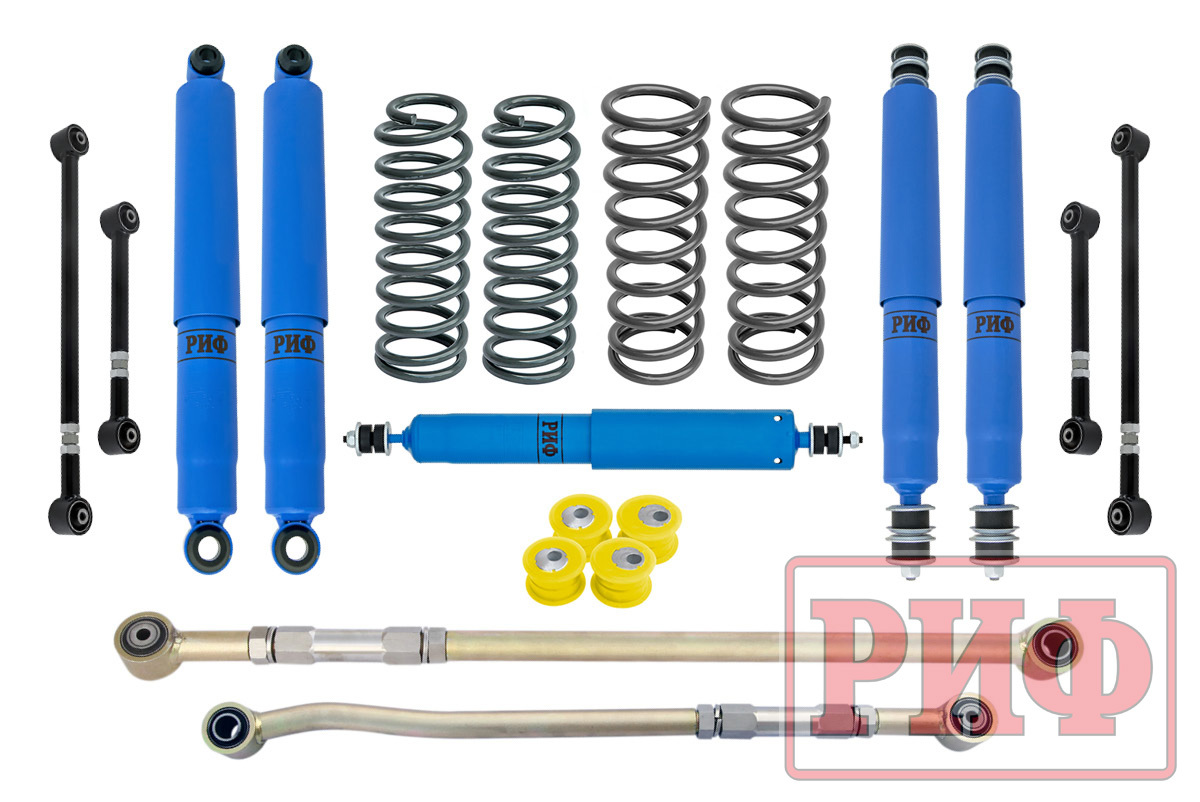 Более того, амортизаторы РИФ используют технологию R-AIR, что повышает их устойчивость к высоким нагрузкам. Все компоненты комплекта тщательно разработаны для надежной работы внедорожника на различных дорожных покрытиях, включая тяжелое бездорожье, разбитые грейдеры и асфальтовые шоссе.