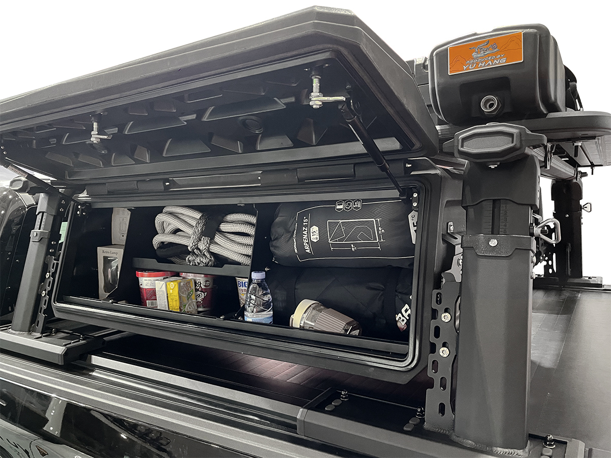 Идеальная организация пространства: В комплекте два больших боковых ящика из прочного пластика с классом защиты IP66. Надежно храните инструменты, тросы, компрессор, снаряжение и личные вещи, защищенные от влаги, пыли и взлома.