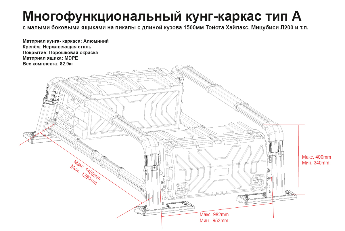 Представляем вам не просто кунг, а силовую модульную платформу Baja Racing типа А с двумя боковыми ящиками. Это революционный подход к организации пространства вашего Toyota Hilux, Mitsubishi L200, Isuzu D-MAX или Nissan Navara.