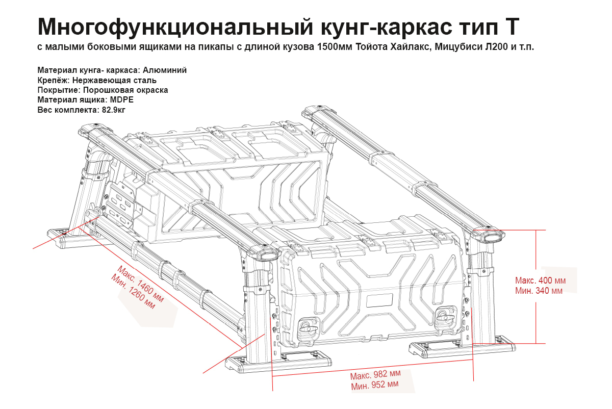 Забудьте об ограничениях стандартного кузова! Многофункциональный кунг-каркас Baja Racing — это инновационная модульная платформа, которая превращает ваш пикап в универсальный инструмент для работы, путешествий и активного отдыха. Это не просто кунг, а продуманная до мелочей система, открывающая безграничные возможности для организации пространства.