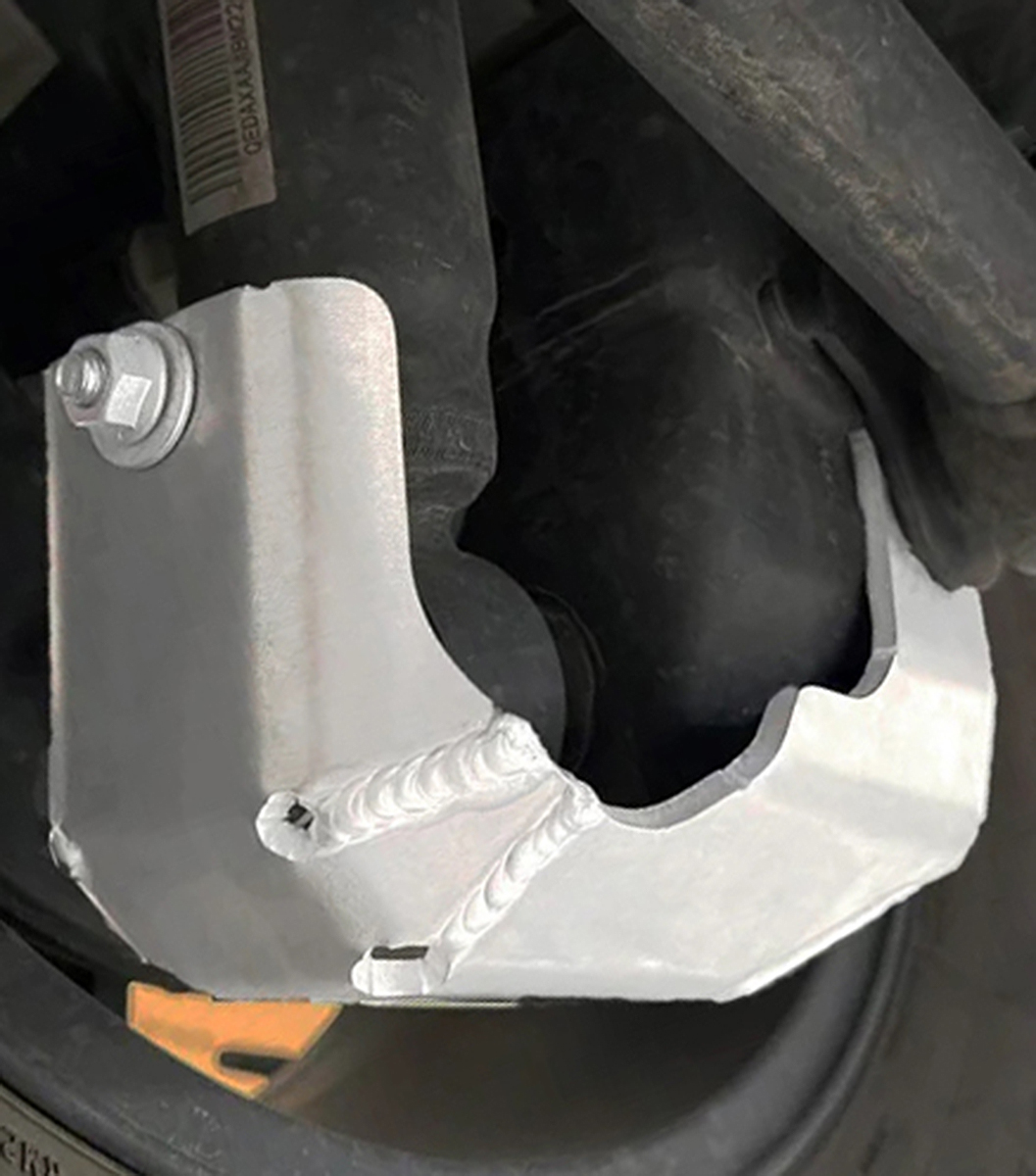 Оптимальная жесткость: Толщина 5 мм выбрана расчетным путем. Алюминий этой толщины отлично гасит энергию удара, принимая деформацию на себя, но не передавая критическое усилие на штатный кронштейн.